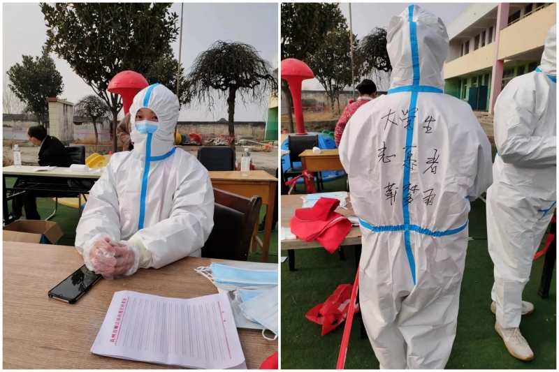 靳夢雨,人文學(xué)院21級學(xué)前9班學(xué)生,家住河南省禹州市順店鎮(zhèn)西魏莊村。曾經(jīng)被親朋好友認(rèn)為“00后”只是個(gè)孩子的她,在這場戰(zhàn)疫中,毅然決然的選擇了迎面而上,加入了村委會(huì)組織的青年志愿者協(xié)會(huì)。剛開始只是負(fù)責(zé)值班,得知第五次核酸檢測需要挑選六位志愿者輔助醫(yī)護(hù)人員進(jìn)行單采,她沒有遲疑,立即報(bào)名,經(jīng)過專業(yè)人員進(jìn)行核酸檢測信息系統(tǒng)培訓(xùn)后,靳夢雨開始穿上防護(hù)服、帶上防護(hù)手套、防護(hù)眼罩。“人生第一次穿上防護(hù)服,剛開始覺得可輕松沒什么,半個(gè)小時(shí)后突然覺得呼吸困難,眼罩也有熱氣,遮擋視線,不到五分鐘就需要用紙擦一下眼罩,真的是太難了,廁所上不了,水喝不了,面對一個(gè)個(gè)來檢測的人員,要迅速跟上醫(yī)護(hù)人員的速度,不能有任何失誤。此時(shí)的我才真正體會(huì)到醫(yī)護(hù)人員不容易,有的甚至24小時(shí)穿著防護(hù)服工作,歷經(jīng)5個(gè)小時(shí),終于完成了所有的核酸檢測,當(dāng)小心翼翼的脫掉防護(hù)服時(shí),突然覺得好舒服,希望本次疫情早點(diǎn)過去!”