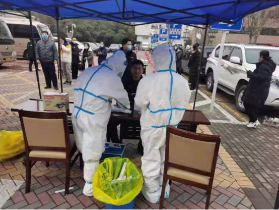 2021年1月6日,學(xué)校通知可以返鄉(xiāng),她便立刻定好了車票,準(zhǔn)備回家追隨哥哥姐姐的腳步,與他們站在一起,到抗疫第一線去。經(jīng)過(guò)緊鑼密鼓的培訓(xùn),第二天她就加入了核酸檢測(cè)工作志愿服務(wù)隊(duì)。