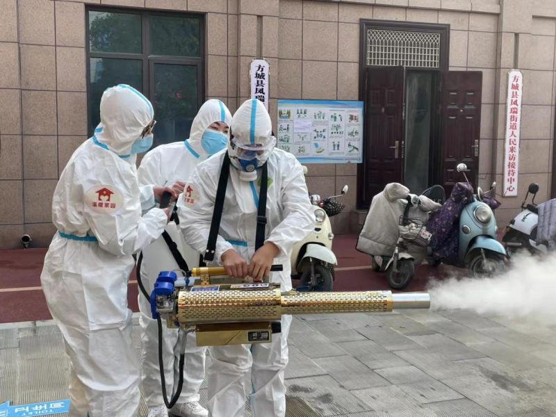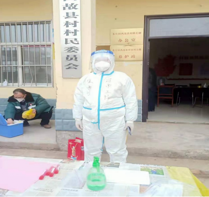機械工程學院志愿者朱俊偉在河南方城縣鳳瑞街道辦事處執(zhí)行消殺任務