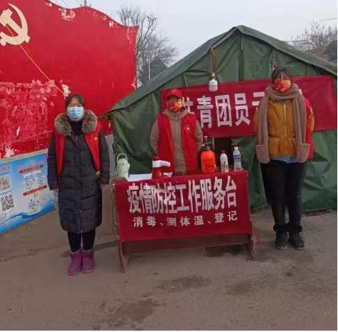 經(jīng)濟貿(mào)易學院三名志愿者在河南平頂山郟縣冢頭鎮(zhèn)疫情防服務臺工作