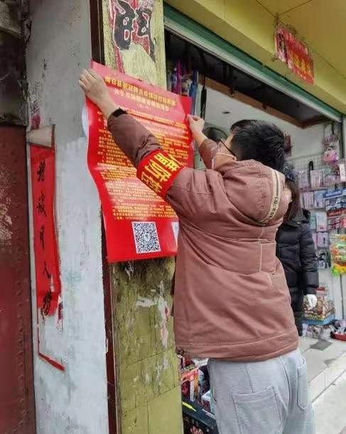 汽車工程學院志愿者賀淏揚在河南南陽南召縣民主社區(qū)挨家挨戶張貼疫情防控告知書