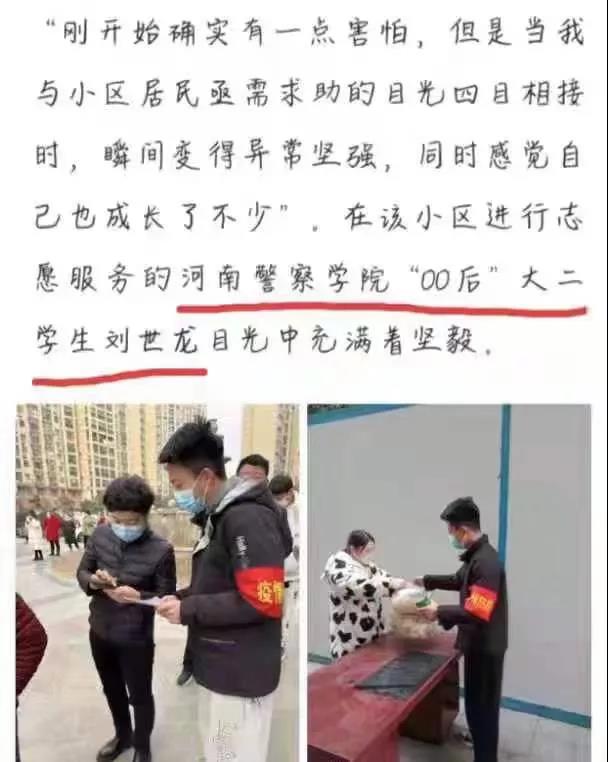 寒假剛剛開啟,河南多個(gè)地方陸續(xù)爆發(fā)新冠疫情。人民至上,在河南迅速掀起抗擊新冠肺炎的人民戰(zhàn)爭(zhēng)。作為警察管理系的一名學(xué)警,理應(yīng)沖在抗擊疫情第一線,我義無反顧地加入社區(qū)志愿者服務(wù)行列。從事志愿服務(wù)以來,我每天按時(shí)電話詢問外省返鄉(xiāng)居民、居家隔離人員健康狀有無異常,每天對(duì)500余人進(jìn)行體溫監(jiān)測(cè)。事情雖然很小,也很繁瑣,但卻有意義。正值第二個(gè)中國(guó)人民警察節(jié),作為一名學(xué)警,我要以光榮的人民警察身份要求自己,時(shí)刻把人民放在心中,對(duì)黨忠誠(chéng),服務(wù)人民,執(zhí)法公正,紀(jì)律嚴(yán)明,矢志不渝做中國(guó)特色社會(huì)主義事業(yè)的建設(shè)者、捍衛(wèi)者!