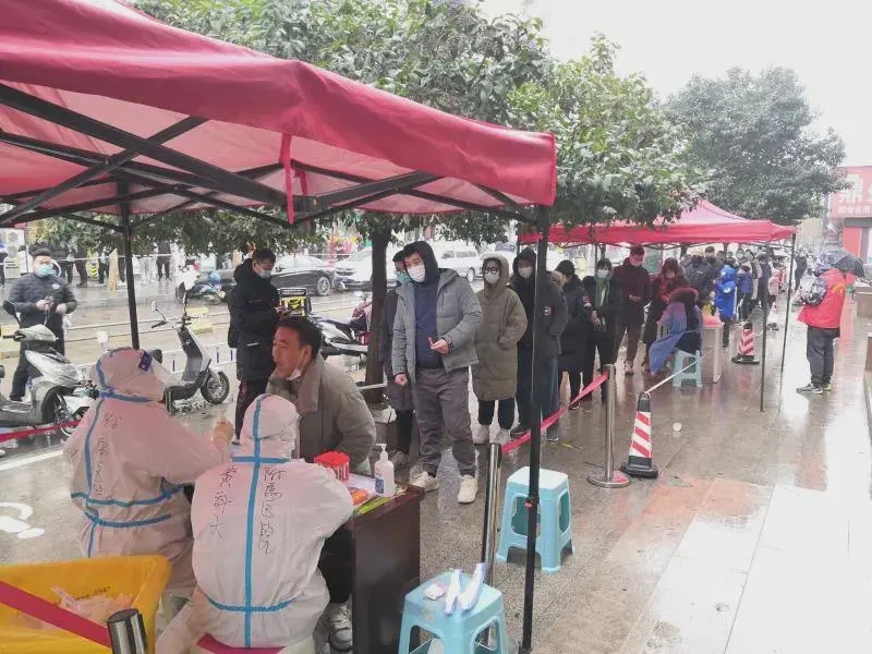 “嘴巴張大點(diǎn)兒,不要緊張”“跟我一起說‘啊’……”冬日的早晨,冷風(fēng)呼嘯,寒氣逼人,黃河科技學(xué)院附屬醫(yī)院864名醫(yī)護(hù)人員分布在二七區(qū)、管城區(qū)多個(gè)街道,支援鄭州市全員核酸檢測(cè)采樣工作。1月3日晚,接上級(jí)通知,要求附屬醫(yī)院抽調(diào)醫(yī)務(wù)人員,支援管城區(qū)核酸檢測(cè)。接到通知后,附屬醫(yī)院黨委書記、院長(zhǎng)李玉東立即部署相關(guān)工作,安排相關(guān)部門做好長(zhǎng)期“備戰(zhàn)”準(zhǔn)備。雖然檢測(cè)點(diǎn)配備了電熱器、發(fā)熱貼等御寒物資,但是長(zhǎng)時(shí)間的室外檢測(cè)工作,不斷地往手套上噴灑冰冷的消毒酒精,一天下來醫(yī)務(wù)人員往往凍得手腳麻木。但是他們毫無怨言,不懼嚴(yán)寒、不畏艱辛、堅(jiān)守崗位。一位群眾動(dòng)情地說:“雖然隔著防護(hù)服和面罩,我們看不清他們的臉,但是他們卻為我們構(gòu)筑一道隱形的健康長(zhǎng)城,很感謝這些白衣天使的付出。”