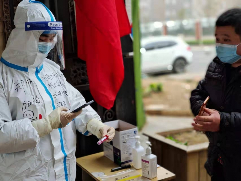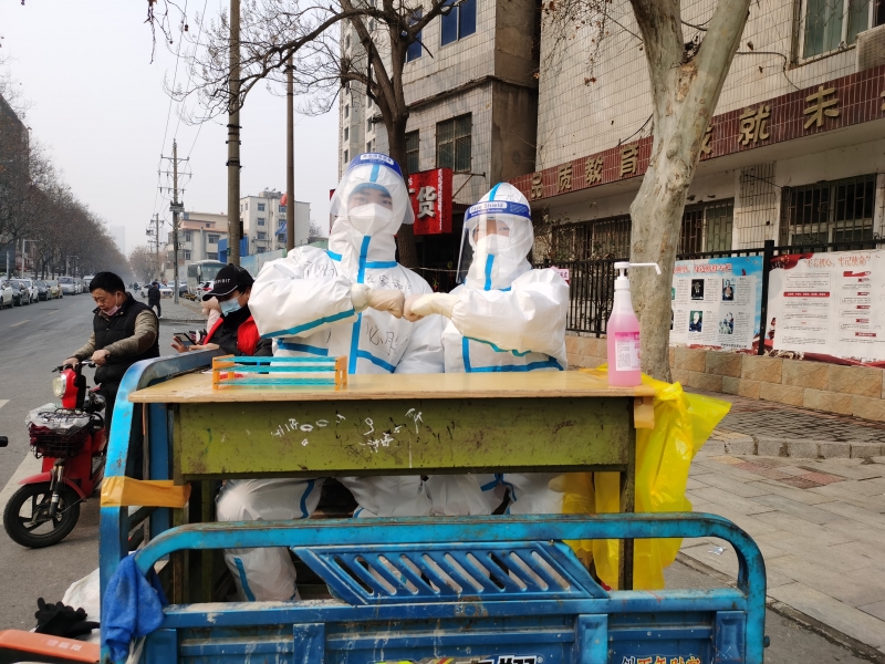 近一個星期,鄭富豪過著家、核酸檢測點和流動車之間“三點一線”的生活。每天全身消殺、穿戴好防護服后,上午在核酸檢測點定點服務,下午坐上核酸檢測流動車流動服務。“我是入黨積極分子,為人民服務是應該的。不少居民在核酸檢測后道謝,讓我們注意安全,我心里暖暖的。”