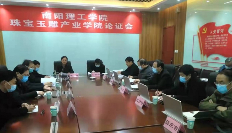 河南省學(xué)位委員會第四屆學(xué)科評議組藝術(shù)學(xué)組召集人、河南省普通高校美術(shù)學(xué)類教學(xué)指導(dǎo)委員會主任委員魏小杰,教育部高等學(xué)校設(shè)計學(xué)類專業(yè)教學(xué)指導(dǎo)委員會委員王曉予,國家級非物質(zhì)文化遺產(chǎn)“鎮(zhèn)平玉雕”代表性傳承人仵海洲,南陽獨山玉雕刻研究所所長劉曉強,平頂山學(xué)院發(fā)展規(guī)劃處處長高向麗五位專家逐一發(fā)言,對設(shè)立南陽理工學(xué)院珠寶玉雕產(chǎn)業(yè)學(xué)院表示肯定,認為有助于創(chuàng)新高素質(zhì)應(yīng)用型人才培養(yǎng)模式,服務(wù)鎮(zhèn)平玉產(chǎn)業(yè)高質(zhì)量發(fā)展,助力南陽副中心城市建設(shè),并且符合上級政策導(dǎo)向,具備較好建設(shè)基礎(chǔ),十分必要、切實可行。五位專家還就政策要求、辦學(xué)規(guī)模、專業(yè)設(shè)置、師資隊伍、行業(yè)需求、科研創(chuàng)新、人才培養(yǎng)、未來規(guī)劃等提出意見建議。