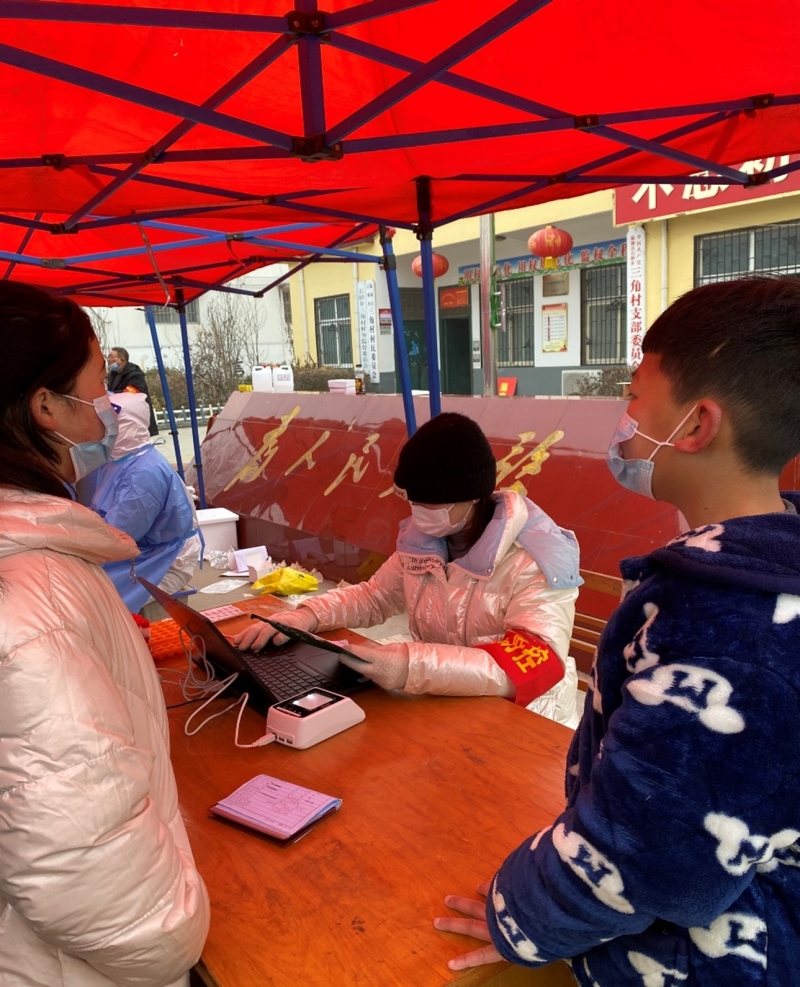 “疫情當(dāng)前,我不能貪圖享樂(lè),應(yīng)該挺身而出,雖不能做偉大的事,但能用偉大的愛(ài)做力所能及的事。”1月5日至今,2020級(jí)建筑室內(nèi)設(shè)計(jì)2班吳若楠在漯河市臨潁縣石橋鄉(xiāng)參加志愿服務(wù)活動(dòng)。在鄉(xiāng)鎮(zhèn)卡點(diǎn)處,她和黨員干部們輪流值班,并在鄉(xiāng)鎮(zhèn)全員核酸檢測(cè)中擔(dān)任信息員,錄入村民詳細(xì)信息。