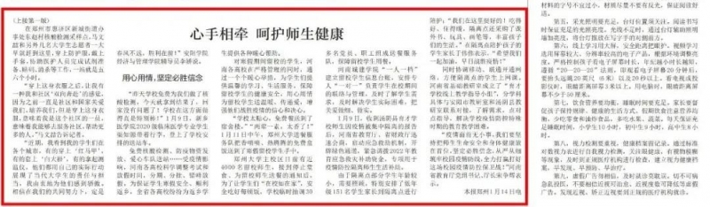 1月15日,《中國教育報(bào)》一版重點(diǎn)報(bào)道河南教育人的戰(zhàn)疫事跡。下面,跟隨中國教育報(bào)記者深入河南戰(zhàn)疫一線,了解全力打贏這場疫情防控保衛(wèi)戰(zhàn)背后河南教育人的眾志成城。