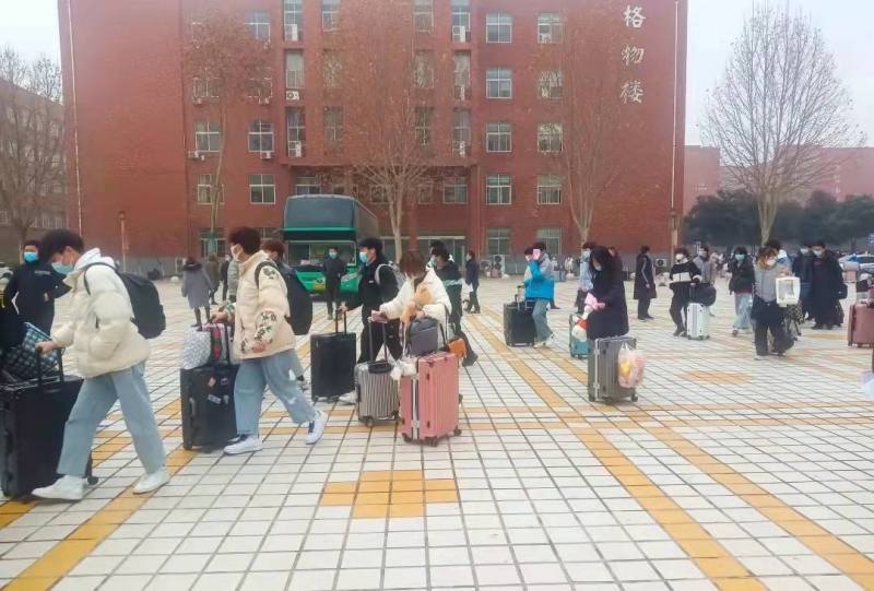 在當(dāng)?shù)匾咔橼呌诜€(wěn)定后,為確保每一位洛科學(xué)子都能安全離校、平安到家,學(xué)校組織了多輪全員核酸檢測(cè),并經(jīng)上級(jí)請(qǐng)示后,從11日下午到12日下午,近3000名家在省內(nèi)非中高風(fēng)險(xiǎn)地區(qū)的洛科學(xué)子分批陸續(xù)離校。