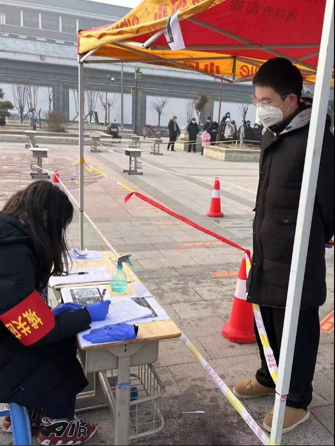8號下午,“緊急通知,根據(jù)疫情形勢,我們即將開始做全民核酸。”因為去年暑假我做過核酸檢測的志愿者,有這方面的經(jīng)驗,便積極地報名參與本輪全民核酸的志愿活動。從8號下午六點到9號下午四點左右我們按照要求完成了全民核酸檢測。