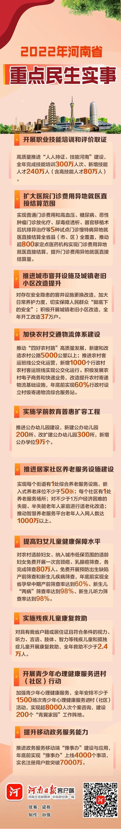 近日,中共河南省委辦公廳、河南省人民政府辦公廳印發(fā)了《2022年河南省重點民生實事工作方案》,并發(fā)出通知,要求各地各部門結(jié)合實際認真貫徹落實。