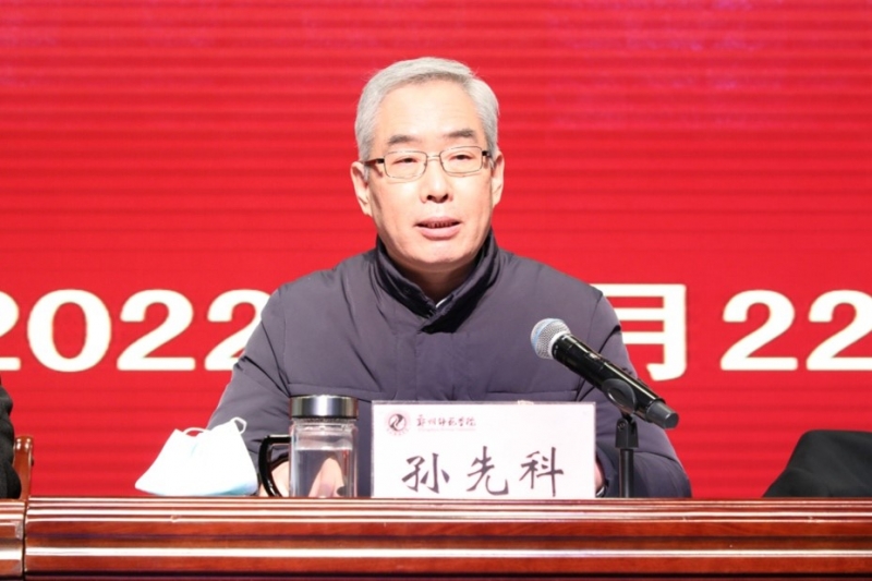 學(xué)校黨史學(xué)習(xí)教育領(lǐng)導(dǎo)小組組長(zhǎng),黨委副書記、校長(zhǎng)孫先科作黨史學(xué)習(xí)教育總結(jié)講話。