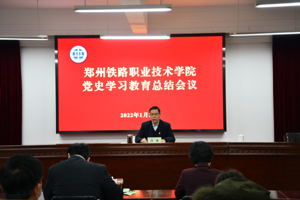 1月21日,鄭州鐵路職業(yè)技術(shù)學(xué)院在新校區(qū)302會議室召開黨史學(xué)習(xí)教育總結(jié)會議,黨委書記許琰作黨史學(xué)習(xí)教育總結(jié)報告。會議采用線上線下相結(jié)合的方式進行,省委高校工委黨史學(xué)習(xí)教育第四巡回指導(dǎo)組成員楊宗輝、郭婷在線列席會議。全體校領(lǐng)導(dǎo)、黨委職能部門負責(zé)人現(xiàn)場參會,其他中層干部在線參加會議。會議由黨委副書記、紀委書記謝乾主持。