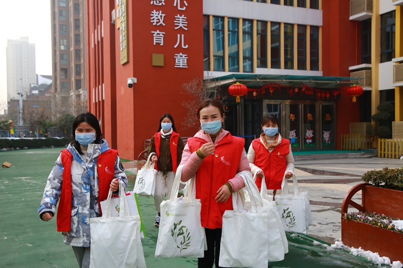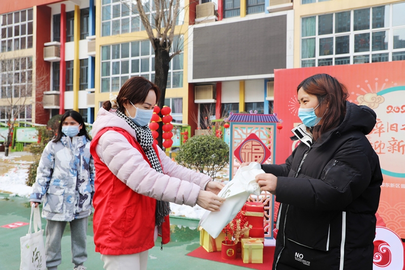 為保證活動的順利展開,鄭州市鄭東新區(qū)普惠路第二幼兒園黨員、教師充分準(zhǔn)備相應(yīng)物品,喜氣盈盈的春聯(lián)、齊全的防疫物資、溫暖的手套、環(huán)保布織袋等,為冬日依然堅守崗位的工作人員、社區(qū)老人送去新春祝福。