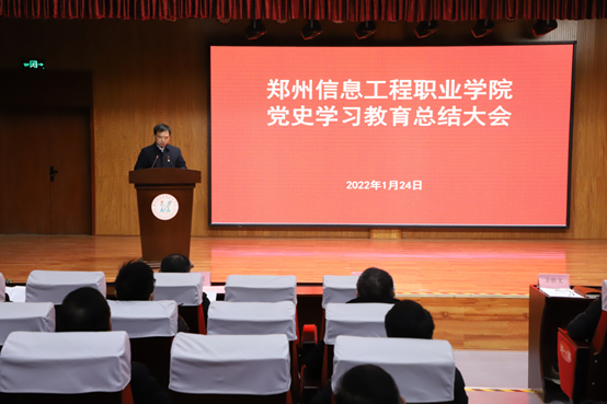 1月24日,鄭州信息工程職業(yè)學(xué)院在音樂(lè)廳召開黨史學(xué)習(xí)教育總結(jié)大會(huì)。校領(lǐng)導(dǎo)淮建利、衛(wèi)世文、田軍強(qiáng)、陳貞忠、張亞?wèn)|、王偉超、張山山、范玉峰、任濤燕、陶熙文以及校黨委委員出席會(huì)議。各黨總支、直屬黨支部書記、中層干部和黨員代表參加現(xiàn)場(chǎng)會(huì)議,其他黨員在線上參加會(huì)議。會(huì)議由黨委副書記、常務(wù)副校長(zhǎng)陳貞忠主持。