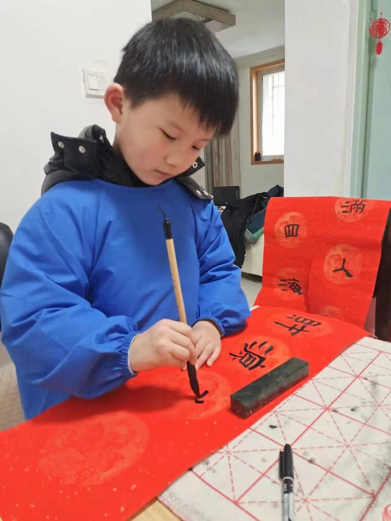 孩子們感受和傳承傳統(tǒng)文化的最佳途徑就是讓其親身參與。春節(jié)是我國最隆重的傳統(tǒng)節(jié)日,孩子們和家人一起參與買年貨、貼對聯(lián)、包餃子、拜大年等民俗活動,體會濃濃的年文化。也可以從拍攝拜年小視頻,制作虎文化作品等作業(yè)中,收獲快樂和幸福,感受傳統(tǒng)文化的魅力。