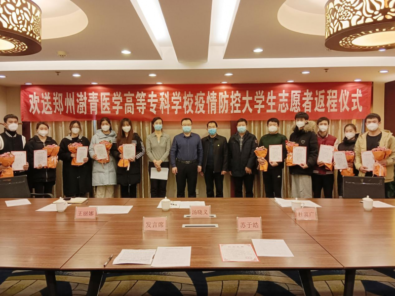 1月26日,鄭州市二七區(qū)在疫情防控指揮部舉行歡送儀式,用鮮花和掌聲向來自鄭州澍青醫(yī)學高等專科學校的10名志愿者致以崇高敬意和衷心感謝。區(qū)委常委、紀委書記、監(jiān)委代主任湯曉義,學校黨委副書記杜富廣參加儀式并講話。歡送儀式由區(qū)紀委副書記、監(jiān)委副主任王麗娜主持,區(qū)紀委常委陳克出席會議。
