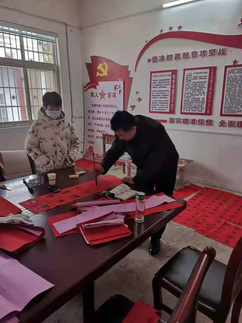 與此同時,扶溝縣教體局還充分發(fā)揮專業(yè)素養(yǎng)較高的部門優(yōu)勢,在該縣韭園鎮(zhèn)何家村等幫扶村積極開展義務(wù)撰寫春聯(lián)、助力疫情防控活動。
