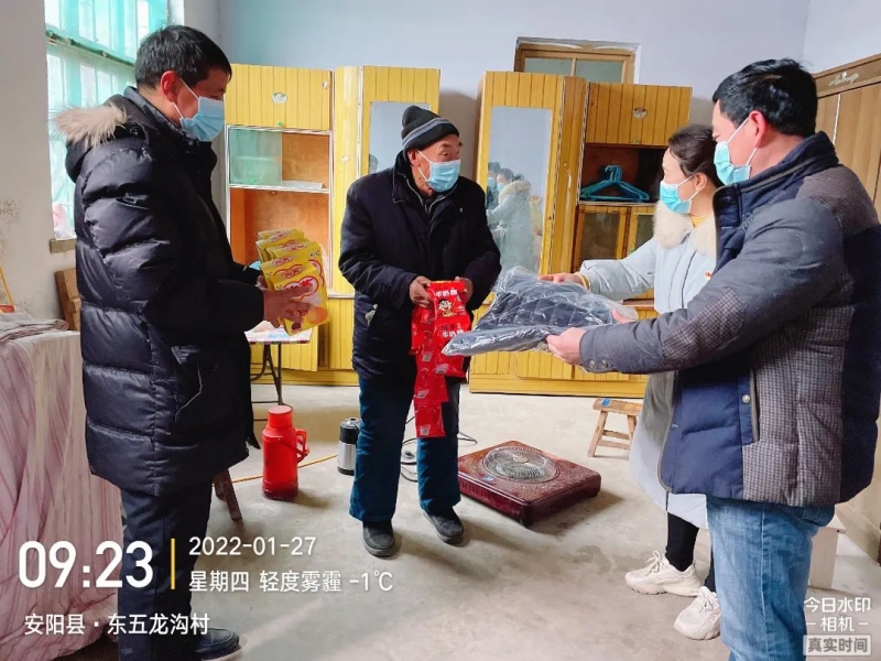 近日,教育時(shí)報(bào)記者在駐馬店了解到,在2022年新春佳節(jié)來臨之際,駐馬店市教育局黨組書記、局長牛清泉,一級調(diào)研員鄢忠偉,副局長劉世杰,辦公室主任王新洪,機(jī)關(guān)黨委辦公室主任郭松一行深入定點(diǎn)結(jié)對幫扶村——驛城區(qū)水屯鎮(zhèn)鐘樓村和遂平縣常莊鎮(zhèn)杜趙村開展送溫暖慰問活動(dòng),給兩個(gè)村送去共計(jì)30套米、面、油,58件飲料及2萬元鄉(xiāng)村振興經(jīng)費(fèi)。