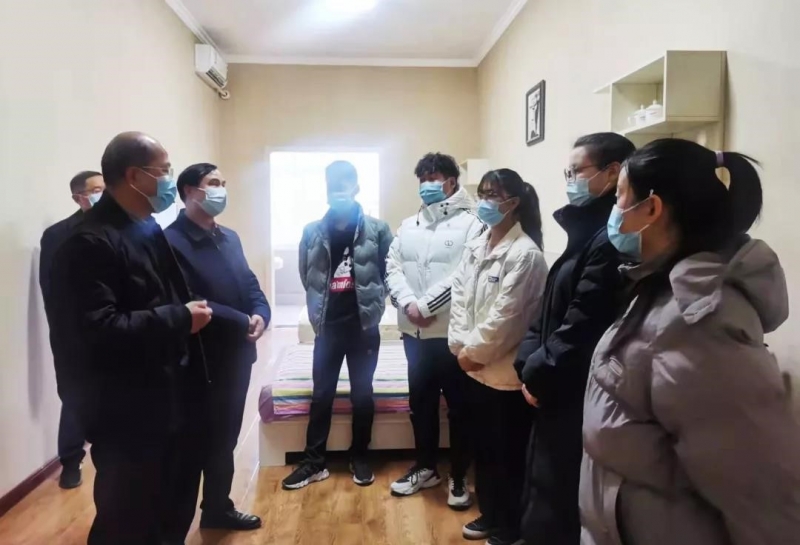 “給父母聯(lián)系了沒有?對(duì)學(xué)校的安排有什么意見?”校黨委委員、副校長(zhǎng)崔明辰第一時(shí)間深入學(xué)生宿舍看望因疫情未能返家的留校學(xué)生,幫助同學(xué)們解決生活中的難題。對(duì)于學(xué)生生活學(xué)習(xí)中遇到的的困難,立刻與學(xué)校相關(guān)部門溝通解決。