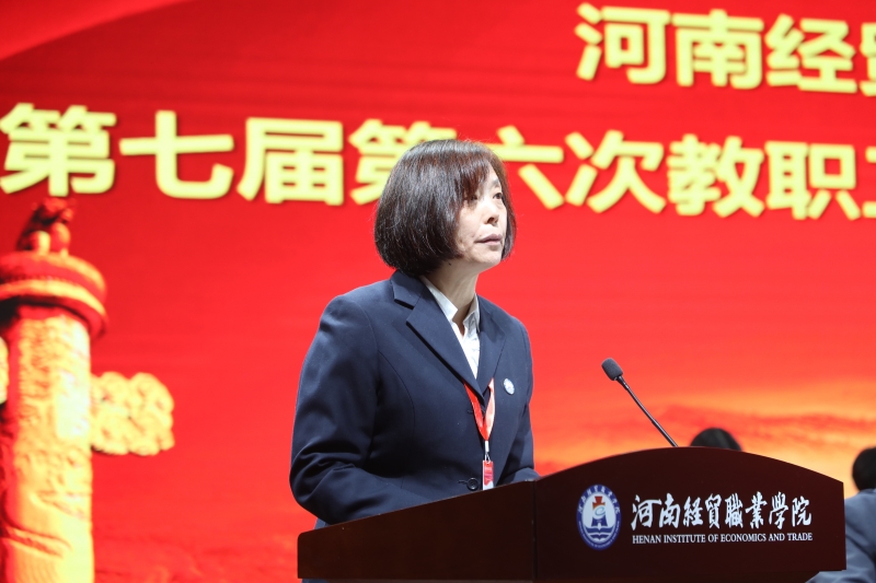 校長(zhǎng)王新慶作題為《踔厲奮發(fā)強(qiáng)化能力作風(fēng) 篤行不怠爭(zhēng)創(chuàng)職教本科 以優(yōu)異成績(jī)迎接黨的二十大勝利召開》的學(xué)校工作報(bào)告。報(bào)告指出,2021年,學(xué)校以黨史學(xué)習(xí)教育為契機(jī),黨的建設(shè)全面加強(qiáng);以師生健康為根本,雙戰(zhàn)雙贏彰顯經(jīng)貿(mào)智慧;以三級(jí)賽事為平臺(tái),大賽品牌越擦越亮;以教研科研為牽引,三教改革成果豐碩;以“校友精神”為指引,就業(yè)招生互促互進(jìn);以“兩個(gè)滿意”為標(biāo)準(zhǔn),“五育”并舉成績(jī)優(yōu)異;以開放辦學(xué)為抓手,合作共贏碩果累累;以治理效能為保障,校園建設(shè)成效顯著。報(bào)告清醒地審視了目前存在的問題和薄弱環(huán)節(jié),并指出2022年工作的總體要求。圍繞實(shí)現(xiàn)“升格本科層次職業(yè)大學(xué)和舉辦職教本科專業(yè)”的目標(biāo),重點(diǎn)做好六個(gè)方面的工作:一是全面加強(qiáng)黨的建設(shè),推動(dòng)事業(yè)高質(zhì)量發(fā)展;二是全面提升治理效能,鞏固提升改革成果;三是強(qiáng)化教學(xué)中心地位,持續(xù)提升人才質(zhì)量;四是深化對(duì)外開放辦學(xué),彰顯類型教育特色;五是樹牢“五個(gè)一切”理念,提升學(xué)生工作品牌;六是建設(shè)文明標(biāo)兵校園,構(gòu)建幸福經(jīng)貿(mào)家園。