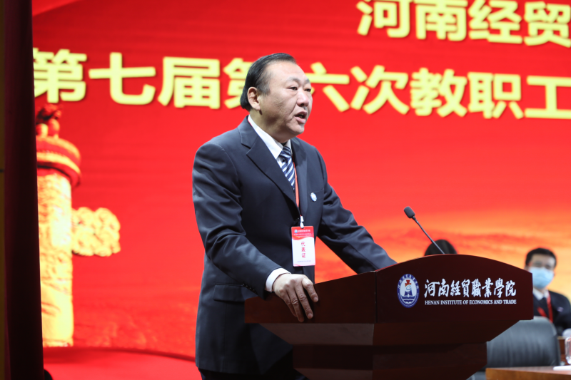 2月17—18日,河南經(jīng)貿(mào)職業(yè)學(xué)院召開第七屆第六次教職工暨工會(huì)會(huì)員代表大會(huì)。學(xué)校全體領(lǐng)導(dǎo)班子、正式代表及特邀嘉賓參加會(huì)議。開幕式由黨委副書記康勇主持。
