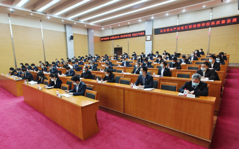 楊義波強調(diào),今年是黨的二十大召開之年,是學(xué)校實施“十四五”規(guī)劃的發(fā)力之年,也是學(xué)校加速攻堅、突破蝶變的關(guān)鍵之年。面對新挑戰(zhàn),我們要深入學(xué)習(xí)貫徹習(xí)近平總書記關(guān)于全面從嚴治黨重要論述,大力弘揚偉大建黨精神,勇于自我革命,永葆政治本色,堅決捍衛(wèi)“兩個確立”、自覺做到“兩個維護”;馳而不息推進全面從嚴治黨,做到態(tài)度不變、決心不減、尺度不松,在新的趕考路上始終不變質(zhì)、不變色、不變味,以優(yōu)異成績迎接黨的二十大勝利召開。
