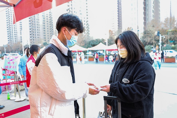 期間,身著紅馬甲的志愿者們?yōu)榉敌W(xué)生送上開學(xué)的第一份溫暖,在門口、擺渡車站點(diǎn)、核酸檢測(cè)點(diǎn)等各環(huán)節(jié),做好各項(xiàng)貼心服務(wù)。