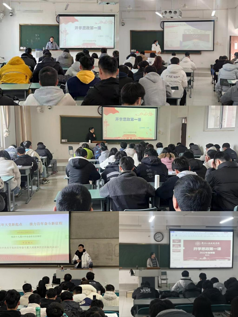 為深入貫徹習(xí)近平總書記關(guān)于“大思政課”建設(shè)的重要指示精神,全面落實《關(guān)于新時代加強和改進思想政治工作的意見》,根據(jù)中共河南省委教育工委、河南省教育廳以及鄭州市和鄭州工程技術(shù)學(xué)院黨委的安排部署,該校馬克思主義學(xué)院于2月19日開始迅速行動并積極安排,以深入學(xué)習(xí)黨的十九屆六中全會精神、深入學(xué)習(xí)習(xí)近平總書記關(guān)于體育的重要論述以及深入學(xué)習(xí)中國共產(chǎn)黨河南省第十一次代表大會精神為核心內(nèi)容,組織五個教研室進行集體備課、制作教學(xué)課件,結(jié)合不同的課程和專業(yè)角度進行解讀,帶領(lǐng)學(xué)生一起打造豐富的“思政盛宴”。目前,開學(xué)思政第一課仍在持續(xù)進行中。