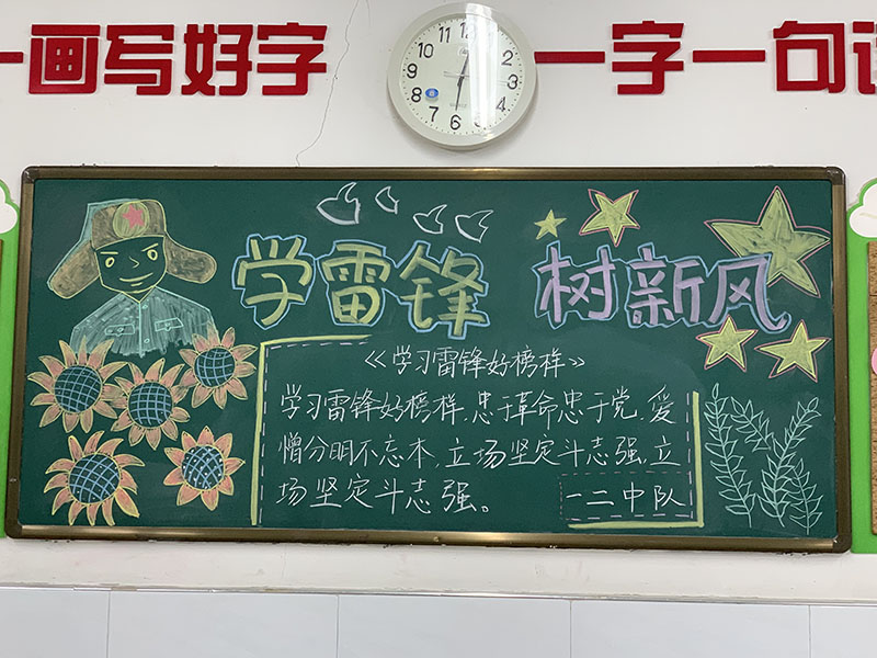 各中隊(duì)組織開(kāi)展“學(xué)雷鋒 我行動(dòng)”主題班會(huì)。隊(duì)會(huì)上,同學(xué)們有的講述雷鋒小故事、朗誦雷鋒名言,有的講述身邊的雷鋒事跡,還有的同學(xué)談了自己將怎樣把雷鋒精神落在實(shí)際行動(dòng)中。各中隊(duì)輔導(dǎo)員鼓勵(lì)學(xué)生們見(jiàn)賢思齊、向上向善,從身邊的小事做起,爭(zhēng)做新時(shí)代的小雷鋒。此外,為廣泛宣傳雷鋒精神,學(xué)校各中隊(duì)還制作了精美的“學(xué)雷鋒 我行動(dòng)”黑板報(bào)。