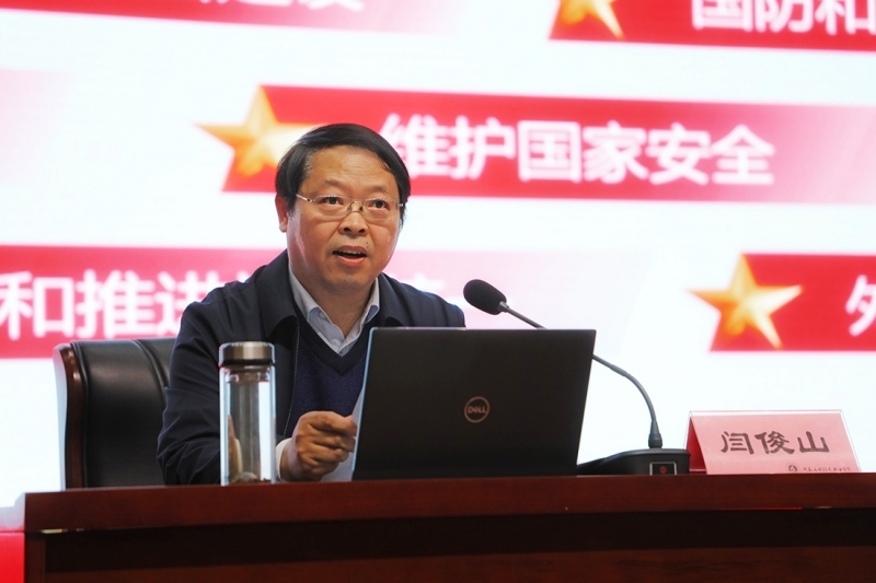 閆俊山從師生們關注的北京冬奧會為切入點,從中國奧運百年,看中華之崛起,深刻剖析了過去我們?yōu)槭裁茨軌虺晒Α⑽磥砦覀冇衷鯓硬拍芾^續(xù)成功?從十八大以來黨和國家事業(yè)取得的歷史性成就、我們黨百年奮斗的歷史意義和積累的寶貴歷史經(jīng)驗等幾個方面,帶領師生系統(tǒng)學習、解讀了黨的十九屆六中全會精神。既有政治高度,又有理論深度,同時也對廣大同學提出了勤奮學習、積極鍛煉、全面發(fā)展的殷切希望。
