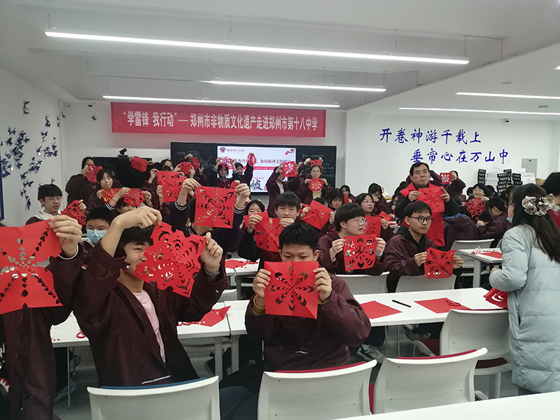 3月4日下午,鄭州市第十八中學與鄭州市文化館“綠城春雨”志愿服務隊聯(lián)合舉行非物質文化遺產進校園活動,旨在弘揚中國優(yōu)秀傳統(tǒng)文化,增強師生非物質文化遺產保護傳承意識,提升文化自豪感和自信心,進一步加強文明校園建設。本次活動分為剪紙、面塑、香包制作等體驗課程,通過講授、體驗、展示、交流的方式進行。