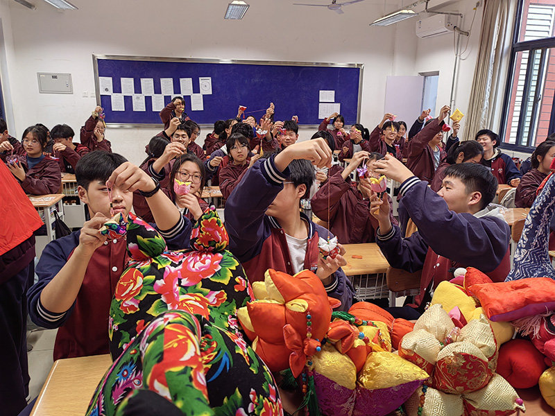 河南省非物質文化遺產香包項目代表性傳承人張艷在高一(10)班教同學們制作香包時講到,香包,古人叫香纓、香囊、佩幃、容臭,又稱荷包、耍貨子、絀絀。它是古代勞動婦女創(chuàng)造的民間刺繡工藝品。是以男耕女織為標志的古代農耕文化的產物。香包從狹義講,是指里面填充丁香、雄黃、艾葉末、冰片、霍香、蒼術等具有芳香除濕功效的中藥材粉末,外表繡以各種圖案的實體造型工藝品。它形狀象包,填充物又有香味,故稱香包。香包從廣義講,既包括實體型香包,又包括沒有填裝料的各類刺繡工藝品,如刺繡鞋墊、肚兜、帽子、披肩、枕套、臺布、門簾、煙包等。香包范圍的擴大,表明了歷史的演進,也反映了勞動人民的智慧。同學們在她的指導下,學習香包的制作,做出了造型可愛,精美別致的香包。