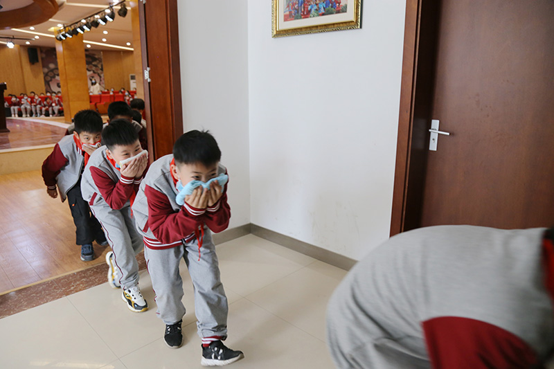 課程最后,王教員指導(dǎo)學(xué)生進(jìn)行了火災(zāi)逃生疏散演練。