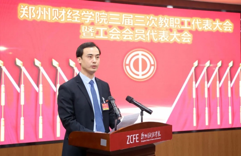3月4日,鄭州財(cái)經(jīng)學(xué)院三屆三次教職工代表大會(huì)暨工會(huì)會(huì)員代表大會(huì)在德正樓第二會(huì)議室舉行。這是在學(xué)校本科教學(xué)工作合格評(píng)估沖刺之年召開的一次具有重要意義的會(huì)議,廣大代表充分履行職責(zé),共同為學(xué)校高質(zhì)量發(fā)展建言獻(xiàn)策。大會(huì)由校監(jiān)事會(huì)主席李慶陽主持。 大會(huì)現(xiàn)場 校監(jiān)事會(huì)主席李慶陽主持會(huì)議 大會(huì)開幕前舉行了代表團(tuán)團(tuán)長會(huì)議,介紹會(huì)議籌備情況,說明代表資格審查情況,通過大會(huì)議程、主席團(tuán)成員和秘書長名單。九個(gè)代表團(tuán)對《學(xué)校工作報(bào)告》《工會(huì)工作報(bào)告》《工會(huì)經(jīng)費(fèi)審查報(bào)告》和《提案處理情況報(bào)告》等進(jìn)行了分組審議和討論。 校長王能民致開幕辭 開幕式上,校長王能民致開幕辭。他指出,在2021年,鄭州財(cái)經(jīng)學(xué)院經(jīng)歷了發(fā)展歷程上意義非凡的一年,全校上下勠力同心,勇毅篤行,統(tǒng)籌推進(jìn)疫情防控和教育教學(xué),奮力打響了迎接本科教學(xué)工作合格評(píng)估攻堅(jiān)戰(zhàn)。2022年,是新時(shí)代新征程中具有特殊重要意義的一年,也是學(xué)校迎接本科教學(xué)工作合格評(píng)估關(guān)鍵之年。聚焦學(xué)校新發(fā)展階段的高質(zhì)量發(fā)展,這次大會(huì)的主題是:深化內(nèi)涵,守正創(chuàng)新,全面推進(jìn)應(yīng)用型本科建設(shè)。 他表示,高等教育進(jìn)入高質(zhì)量發(fā)展階段,學(xué)校要以習(xí)近平新時(shí)代中國特色社會(huì)主義思想為指導(dǎo),鼓足士氣,以奮斗落實(shí)使命,以行動(dòng)擔(dān)當(dāng)責(zé)任,推動(dòng)學(xué)校發(fā)展再上新臺(tái)階。希望各位代表以高度的責(zé)任感、使命感和主人翁意識(shí),從學(xué)校事業(yè)大局出發(fā),圍繞大會(huì)主題,暢所欲言,集思廣益,為學(xué)校發(fā)展建真言、獻(xiàn)良策、出實(shí)招。 理事長牛欽民作學(xué)校工作報(bào)告 理事長牛欽民作題為《深化內(nèi)涵 守正創(chuàng)新 全面推進(jìn)應(yīng)用型本科建設(shè)》的學(xué)校工作報(bào)告,回顧總結(jié)學(xué)校2021年取得的各項(xiàng)成績,深入剖析當(dāng)前學(xué)校發(fā)展面臨的形勢及存在的問題,安排部署2022年工作思路和任務(wù)目標(biāo)。2022年學(xué)校重點(diǎn)工作為緊扣黨的建設(shè),為高質(zhì)量發(fā)展提供堅(jiān)強(qiáng)政治保障;緊扣發(fā)展契機(jī),打好評(píng)建工作沖刺戰(zhàn);緊扣質(zhì)量保障,著力提高教學(xué)管理水平和人才質(zhì)量;緊扣人才強(qiáng)校,強(qiáng)化師資隊(duì)伍建設(shè);緊扣科研規(guī)劃,提升科技創(chuàng)新和社會(huì)服務(wù)能力;緊扣立德樹人,用心服務(wù)學(xué)生成長成才;緊扣優(yōu)質(zhì)服務(wù),保障校園幸福平安。 牛欽民指出,今年是黨的二十大召開之年,是學(xué)校迎接本科教學(xué)工作合格評(píng)估年,任務(wù)艱巨、使命光榮、責(zé)任重大,各單位要把本科教學(xué)工作合格評(píng)估指標(biāo)體系牢記于心,把評(píng)估工作抓在手里、放在心上,樹立起“時(shí)不我待”的緊迫和“舍我其誰”的擔(dān)當(dāng),交出本科教學(xué)評(píng)估和高質(zhì)量發(fā)展的滿意答卷。他強(qiáng)調(diào),2022年也是“安全穩(wěn)定年”,各單位要明確目標(biāo)任務(wù),多舉措抓好、抓細(xì)、抓嚴(yán)安全責(zé)任,全力保證學(xué)校安全穩(wěn)定,實(shí)現(xiàn)校園安全“三零”目標(biāo)。他表示,理事會(huì)將一如既往支持學(xué)校高質(zhì)量發(fā)展,不遺余力為全校師生服務(wù),繼續(xù)做好第五批青年博士團(tuán)隊(duì)選拔、第六批學(xué)生碩博連讀選拔工作,做好教師培養(yǎng)培訓(xùn)及職稱評(píng)定工作。 校工會(huì)主席張彪作工會(huì)工作報(bào)告 大會(huì)還聽取了工會(huì)主席張彪作的《堅(jiān)守初心使命 匯聚奮進(jìn)力量 助力我校高質(zhì)量應(yīng)用型本科高校建設(shè)》工會(huì)工作報(bào)告。報(bào)告總結(jié)了2021年工會(huì)工作,從思想與時(shí)代脈搏同頻,建設(shè)“學(xué)習(xí)型工會(huì)”讓人心更齊;關(guān)愛與教職工需求同向,建設(shè)“服務(wù)型工會(huì)”讓距離更近;活動(dòng)與形象宣傳同步,建設(shè)“陽光型工會(huì)”讓招牌更亮;標(biāo)準(zhǔn)與線上平臺(tái)同行,建設(shè)“創(chuàng)新型工會(huì)”讓管理更精四方面提出了2022年工會(huì)工作重點(diǎn)。張彪表示,校工會(huì)將以“能力作風(fēng)建設(shè)年”活動(dòng)為契機(jī),提升履職盡責(zé)職能、開拓創(chuàng)新職能和擔(dān)當(dāng)落實(shí)職能,匯發(fā)展之志,聚實(shí)干之力,為學(xué)校的本科教學(xué)合格評(píng)估和高質(zhì)量發(fā)展貢獻(xiàn)工會(huì)力量。 人事處副處長胡瑞芝宣讀《教職工工資調(diào)整方案》 會(huì)上,人事處副處長胡瑞芝宣讀了《教職工工資調(diào)整方案》。 分代表團(tuán)討論現(xiàn)場 分代表團(tuán)團(tuán)長匯報(bào)討論情況 隨后,九個(gè)代表團(tuán)團(tuán)長先后匯報(bào)了代表團(tuán)討論情況。 校黨委書記李國強(qiáng)致閉幕辭 校黨委書記李國強(qiáng)致閉幕辭。他指出,這是一次簡約、務(wù)實(shí)