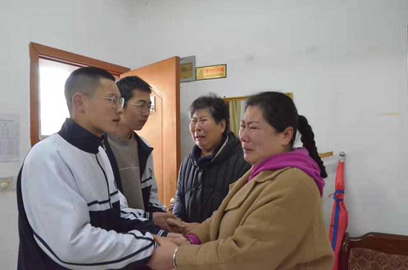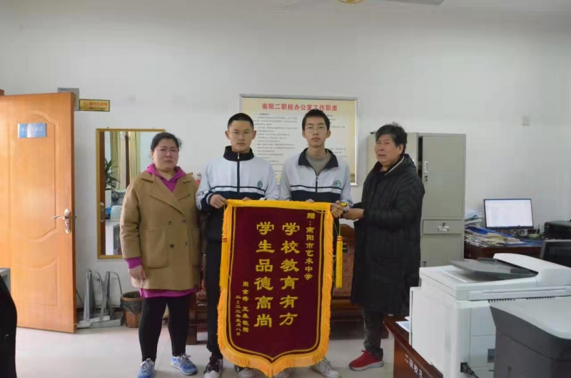 “太感謝你們了!要不是你們及時救孩子,孩子也許早沒命了.......”3月8日上午,兩位女士把一面上寫“學校教育有方,學生品德高尚”的錦旗送給兩位穿校服的學生,雙手緊緊握住兩名學生的手,感激之情無以言表,泣不成聲。