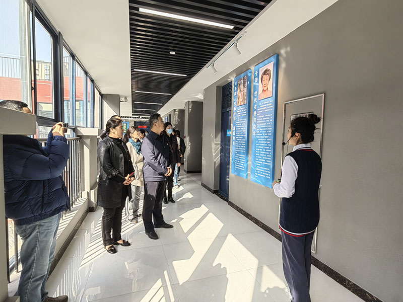 段亞萍從學(xué)校硬件、美育特色、師資力量、社團(tuán)活動(dòng)等方面向各位嘉賓介紹了學(xué)校基本情況。她重點(diǎn)介紹了學(xué)校“赤誠(chéng)向黨,丹心育人”為主題的黨建長(zhǎng)廊,學(xué)校“黨建長(zhǎng)廊”定位為黨建教育的宣講基地、黨性錘煉的紅色熔爐、廉潔文化的傳播中心、師德塑造的生動(dòng)課堂、黨建成果的展示窗口。“黨建長(zhǎng)廊”面積540平方米,具有學(xué)習(xí)教育、展覽展示、交流互動(dòng)與提醒警示“四大功能”,新穎的設(shè)計(jì)展示了黨建文化內(nèi)容,用全新的沉浸式學(xué)習(xí)方式讓師生追憶百年風(fēng)華、重溫紅色精神、致敬英雄楷模、播撒清風(fēng)正氣、尊崇師德典范、賡續(xù)百年榮光。學(xué)校努力把“黨建長(zhǎng)廊”建成帶領(lǐng)學(xué)校發(fā)展的“火車(chē)頭”,打造成引領(lǐng)教師專(zhuān)業(yè)發(fā)展的“紅色引擎”,耕耘為欣欣向榮的“百花園”。
