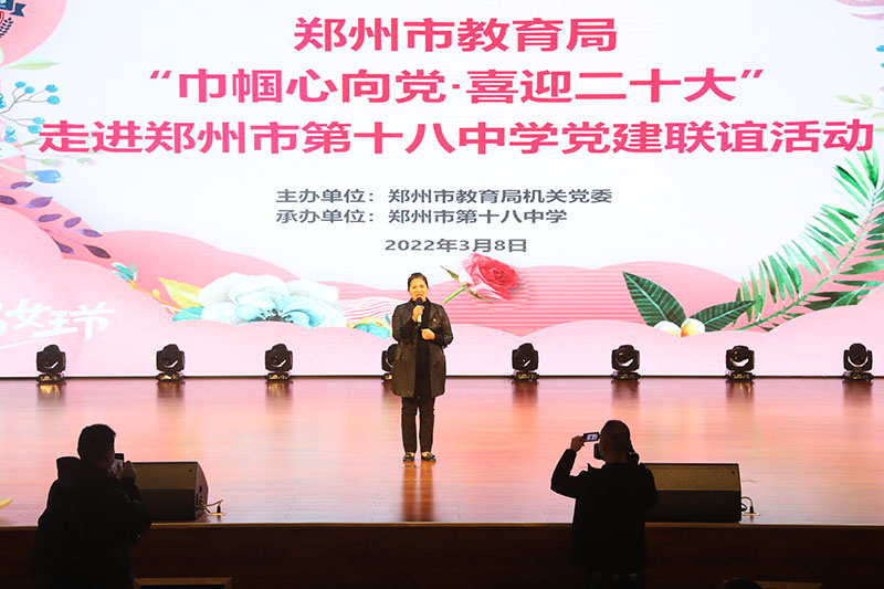 3月8日上午,鄭州市教育局機(jī)關(guān)黨委開(kāi)展走進(jìn)鄭州市第十八中學(xué)黨建聯(lián)誼活動(dòng),市教育局機(jī)關(guān)黨委副書(shū)記郝延秋帶領(lǐng)30余名局機(jī)關(guān)黨員參加本次活動(dòng)。