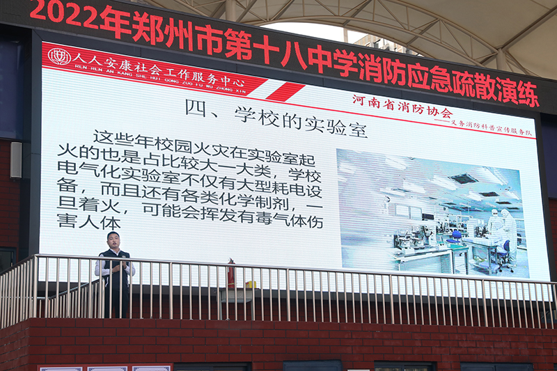 河南省消防協(xié)會的教員曹玉臣為同學們帶來消防知識講座