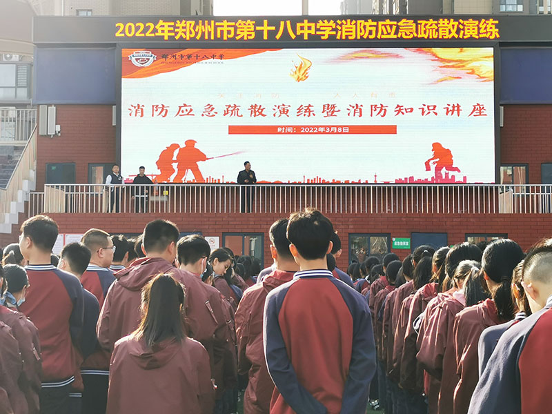 安全責任重于泰山,消防演練防患未然。為進一步增強學生安全意識,提高自我保護能力,筑牢校園消防安全“防火墻”,打造“和諧平安校園”。3月8日下午,鄭州第十八中學組織高一、高二年級1400余名師生有序開展了消防應(yīng)急疏散演練、消防知識講座和消防逃生帳篷體驗活動。