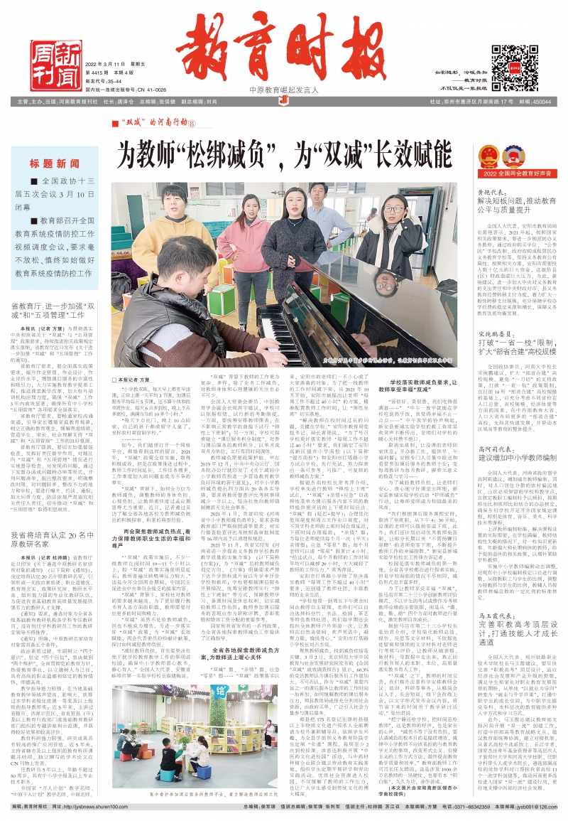 “雙減”雖然不是給教師減負,但也不能成為增負。為進一步落實好“雙減”政策,為“雙減”長效賦能,兩會代表委員紛紛獻計獻策,探討如何減輕教師負擔。