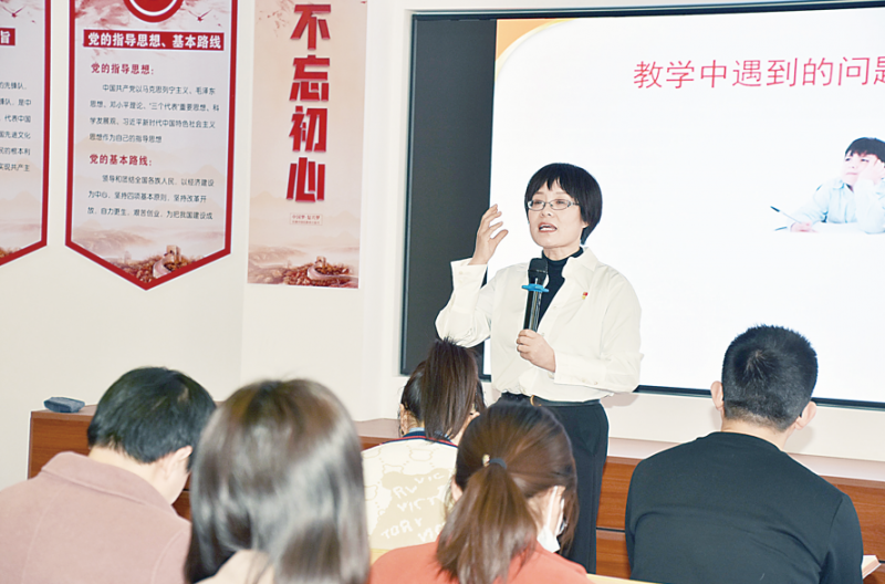 在接受記者采訪前,魏榮梅剛剛參加完數學教研組的活動回到辦公室。作為學校黨委書記,她在管理行為導向方面更是率先垂范。