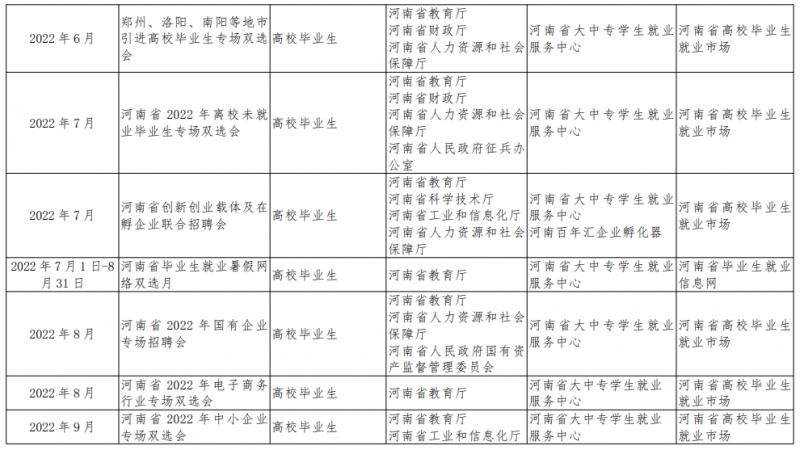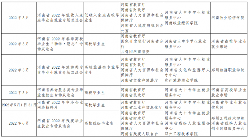 為認(rèn)真貫徹國(guó)家和河南省“穩(wěn)就業(yè)”“保就業(yè)”決策部署,深入落實(shí)2022屆全國(guó)普通高校畢業(yè)生就業(yè)創(chuàng)業(yè)工作網(wǎng)絡(luò)視頻會(huì)議精神,推進(jìn)實(shí)施“2022屆普通高校畢業(yè)生就業(yè)創(chuàng)業(yè)促進(jìn)行動(dòng)”,促進(jìn)河南省高校畢業(yè)生更加充分更高質(zhì)量就業(yè),以優(yōu)異成績(jī)迎接黨的二十大勝利召開。河南省教育廳等17部門繼續(xù)聯(lián)合實(shí)施“河南省2022年高校畢業(yè)生‘新時(shí)代·新夢(mèng)想’就業(yè)創(chuàng)業(yè)公益幫扶行動(dòng)”(以下簡(jiǎn)稱“新時(shí)代·新夢(mèng)想”)。