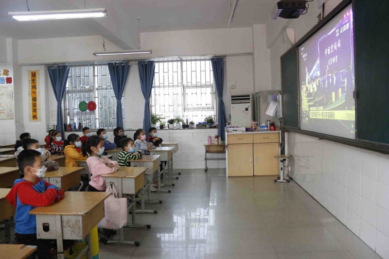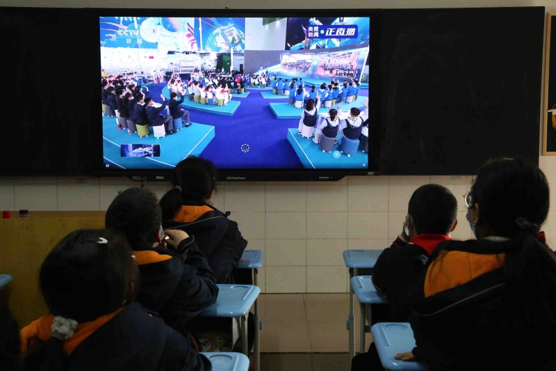 在教室觀看的學(xué)生們個(gè)個(gè)睜大眼睛,聚精會(huì)神,并跟隨著“天宮課堂”的內(nèi)容時(shí)而緊張、時(shí)而驚嘆,教室不時(shí)傳來陣陣掌聲。許多學(xué)生在觀看了直播后,立志長大也要當(dāng)一名宇航員。