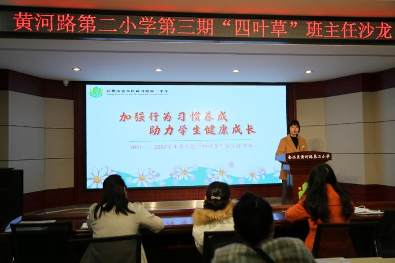 為培養(yǎng)學生養(yǎng)成良好的行為習慣,提高班主任班級管理水平,鄭州市金水區(qū)黃河路第二小學近日舉行了了2021-2022學年第三期“四葉草”班主任沙龍活動。全體班主任老師在電教室歡聚一堂,共同分享班級管理的智慧之道。