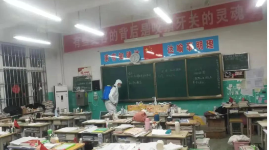 學(xué)校開展全面消殺,重點(diǎn)對(duì)教學(xué)樓、宿舍、食堂、衛(wèi)生間等核心區(qū)域和場(chǎng)所進(jìn)行消毒,加大對(duì)公共環(huán)境衛(wèi)生的整治力度。各年級(jí)各級(jí)部統(tǒng)一配發(fā)酒精噴壺、84消毒液,要求各班勤通風(fēng)、定時(shí)噴灑。