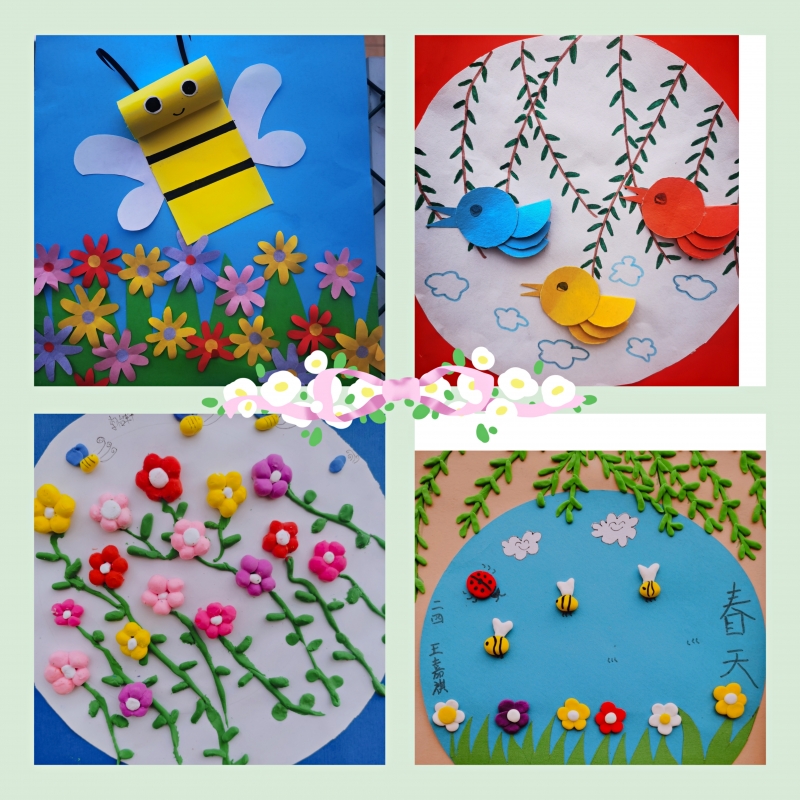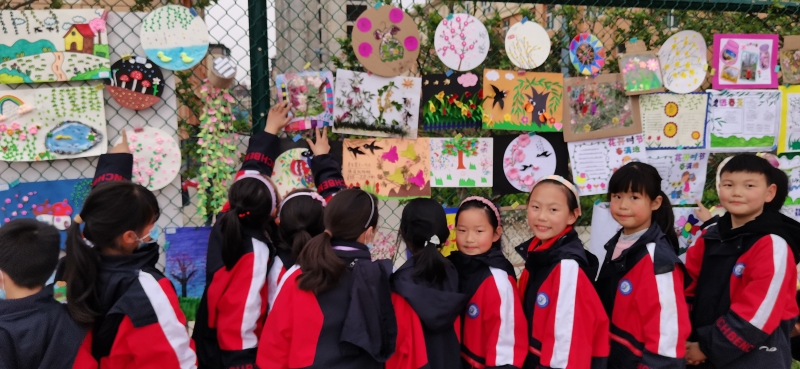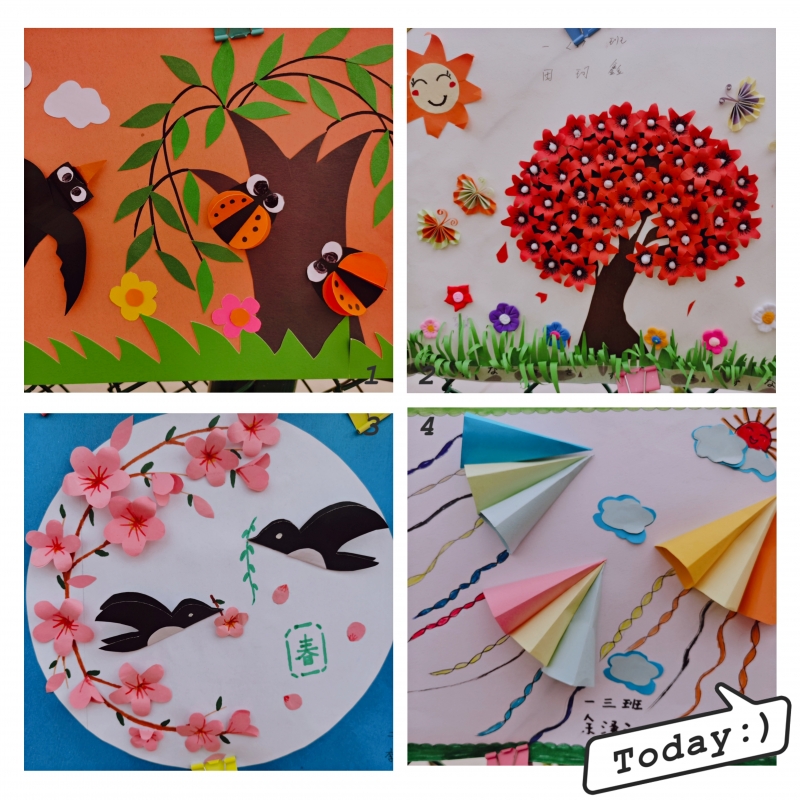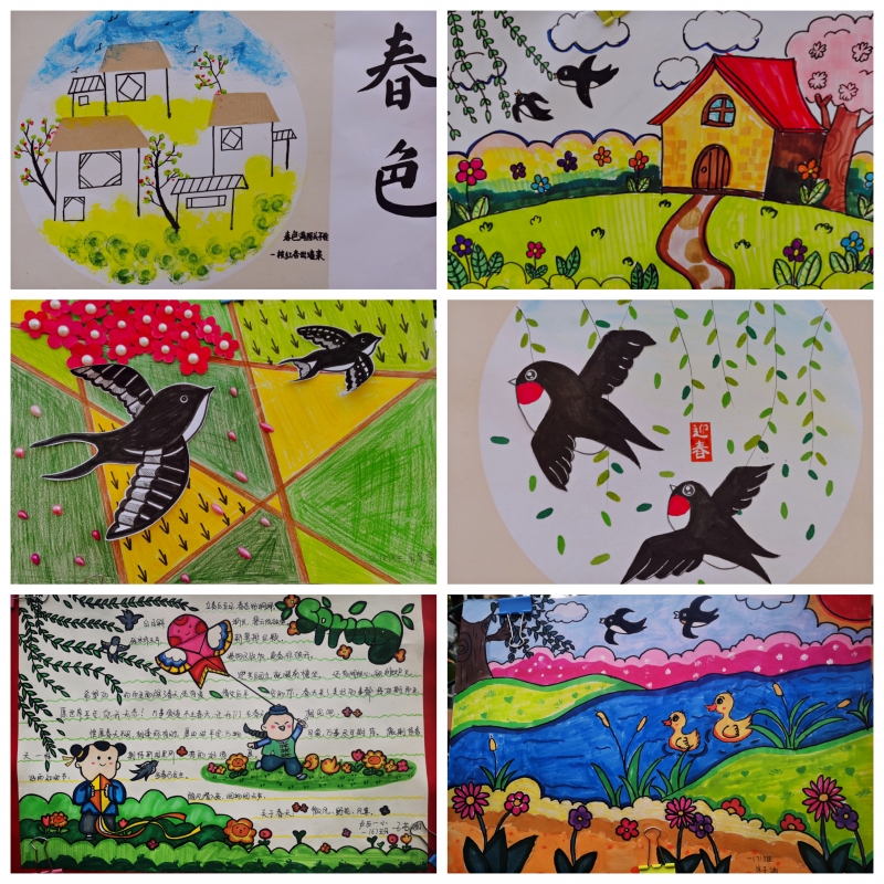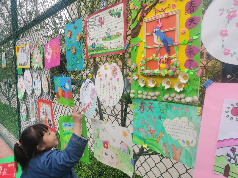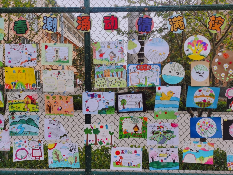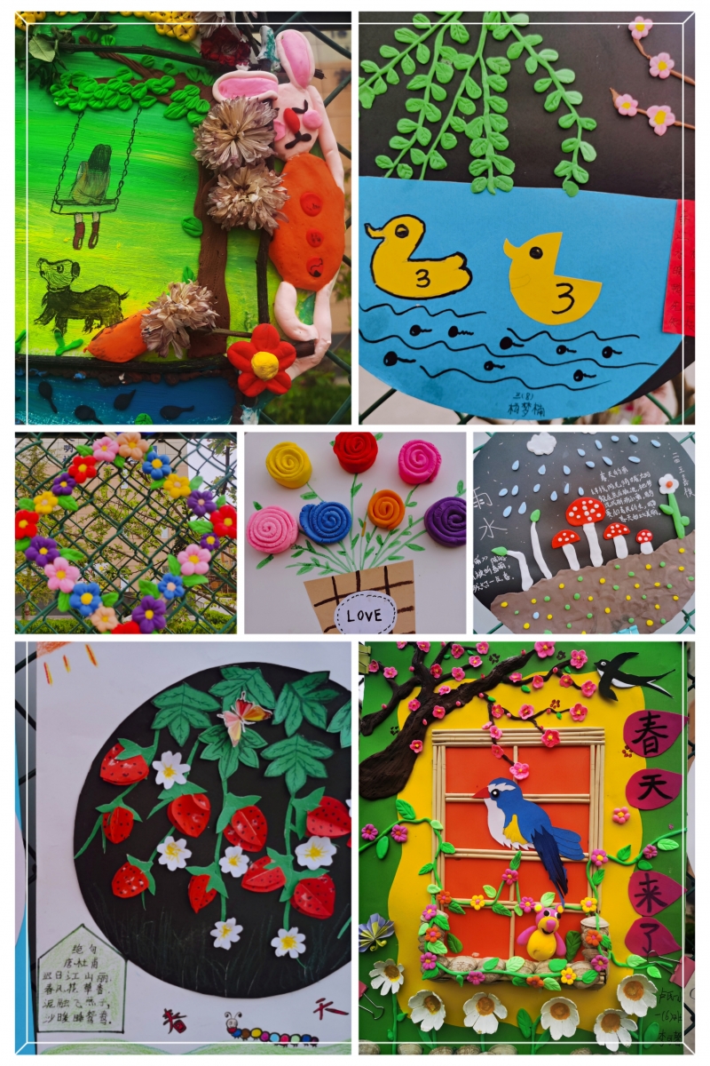 春天如詩,春天如畫。孩子們或漫步在春意盎然的公園里,或?qū)ひ捲邗r花盛開的田野里,通過賞春之美、繪春之夢、塑春之韻、護春之行、解春之迷等活動,用眼睛觀察春天,用小手觸摸春天,潛心發(fā)現(xiàn)春天的元素,仔細(xì)感受一花、一草、一葉的蓬勃生機。同學(xué)們從植物生長、動物活動中尋找書本知識與多彩生活相聯(lián)系的創(chuàng)作元素,描繪“春天里的英語、春天里的數(shù)學(xué)、春天里的詩……”在真實生動的情境中以自己的視角和想象力及創(chuàng)造力,尋找春天的足跡,體會創(chuàng)意制作時別樣的趣味和快樂,不禁萌發(fā)出自己心中那顆美好的種子。來,就讓我們欣賞一下他們眼里的春天吧!