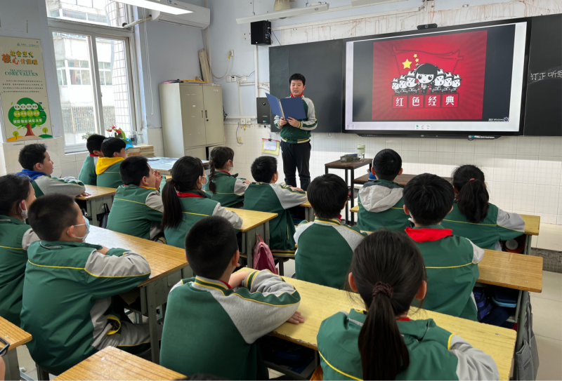 在少先隊活動課中,各年級開展豐富多彩的活動。一至三年級學生在中隊輔導員的帶領下觀看紅色電影。“一寸山河一寸血,一抔熱土一抔魂。”學生聽得認真、看得專注。一次次的隊前教育,讓同學們用更高的標準和要求向少先隊靠攏,用實際行動早日成為一名光榮的少先隊員,扣好人生第一粒扣子。
