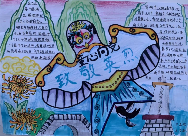 在五年級的教室里,輔導員老師和學生一起收集材料、制作了“童心向黨 禮贊百年”黨史小報。通過清明節(jié)系列活動,學生緬懷革命先烈,傳承紅色基因,汲取奮進力量,厚植愛黨、愛國、愛社會主義的情感!
