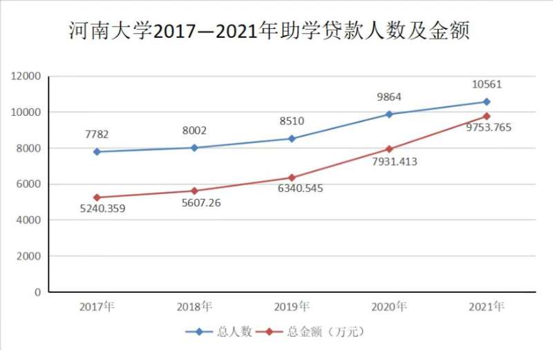 河南大學(xué)歷來高度重視學(xué)生資助工作,建立健全以國家助學(xué)貸款為主體的學(xué)生資助體系。學(xué)校學(xué)生處及學(xué)生資助管理中心認(rèn)真貫徹落實(shí)相關(guān)政策,扎實(shí)做好政策宣傳、貸款申請、資格審查、信息錄入、合同簽訂、資金發(fā)放等各項(xiàng)貸前貸中管理工作。與學(xué)生戶籍所在地資助管理中心、開行河南分行等部門緊密合作,確保全校學(xué)生應(yīng)貸盡貸。2021年,為10651名本科生及研究生申請發(fā)放助學(xué)貸款9753.77萬元,人數(shù)及金額同比增長7.07%及22.98%,創(chuàng)歷史新高。
