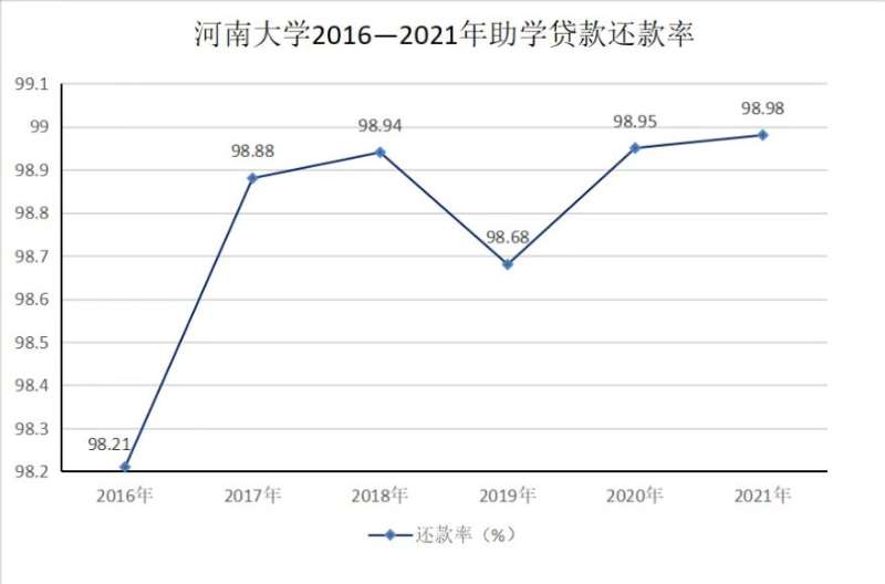 同時,不斷完善貸后管理機(jī)制,持續(xù)豐富服務(wù)手段,強(qiáng)化資助育人功能。通過持續(xù)深入開展“助學(xué)?筑夢?鑄人”及“誠信校園行”主題活動、“助學(xué)貸款政策及誠信教育”宣傳月活動、“資助政策鄉(xiāng)村行”活動等,將“育人”貫穿于資助工作全過程,加強(qiáng)學(xué)生勵志教育、誠信教育、感恩教育及社會責(zé)任感教育,不斷提高學(xué)生還款的積極性和主動性。2021年,全校到期貸款還款率為98.98%,同比增長0.03%,較全省平均還款率高0.53個百分點(diǎn)。